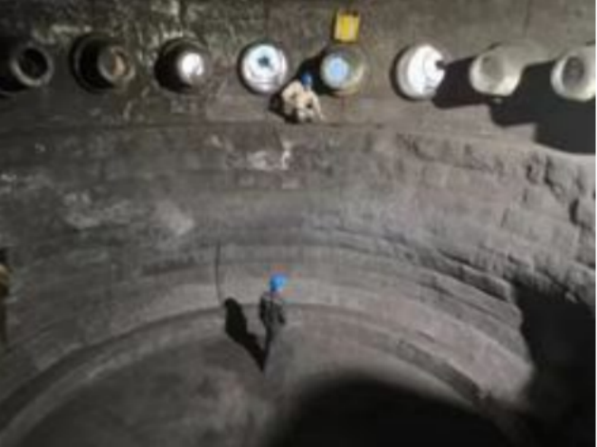 內襯濕法噴注技術的目的是為了解決爐腹、爐腰、爐身等部位耐材脫落引起的氣流不順、能耗升高等問題,其特點是快速高效,可以在較短時間內復產,降低對鐵廠的影響。濕法噴注技術可分熱態和常溫兩種,熱態濕法噴注技術是將料面降到風口區域后,爐內覆蓋壓火料,采用機械手進行噴注造襯,使高爐恢復至操作爐型。這種噴注方式快速安全,人員不用進爐,沒有有限空間作業,對于2000m3左右的高爐,在24小時內即可修復完成。常溫濕法噴注技術是在停爐降料面后,爐內溫度和煤氣含量降到一定標準后,人員進爐內排險清理,也可對爐內植筋掛網,延長耐材使用壽命。
