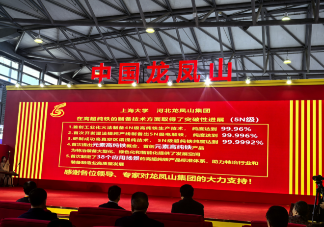 11月5日上午,河北龍鳳山集團(tuán)在上海舉行高超純鐵新產(chǎn)品首發(fā)儀式,該高超純鐵新產(chǎn)品鐵的純度提升至99.9992%(5N級(jí))。此次活動(dòng)由中國特鋼企業(yè)協(xié)會(huì)指導(dǎo),河北龍鳳山集團(tuán)主辦,上海大學(xué)、冶金工業(yè)經(jīng)濟(jì)發(fā)展研究中心、中國冶金報(bào)社協(xié)辦。