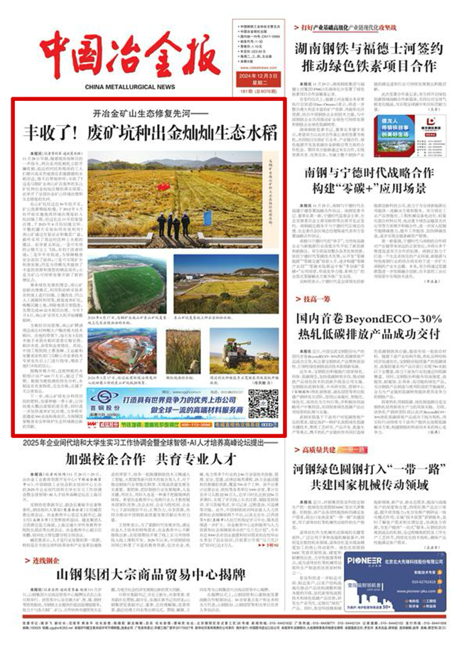 11月28日早晨,隨著現(xiàn)場(chǎng)指揮員的一聲指令,兩臺(tái)農(nóng)用收割機(jī)立即開(kāi)鐮收割,臨近的村民和現(xiàn)場(chǎng)的工人們都興高采烈地圍在彩旗獵獵的水稻田邊,情不自禁地歡呼:豐收了!這是馬鋼礦業(yè)南山礦在廢棄的東山礦坑種出金燦燦莊稼的真實(shí)場(chǎng)景,此舉開(kāi)了全國(guó)冶金礦山環(huán)境治理和生態(tài)修復(fù)的先河。
