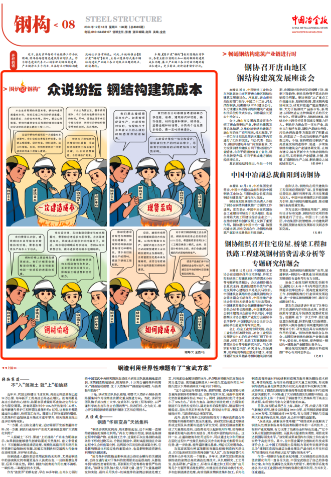 近日,在北京舉行的中央經(jīng)濟(jì)工作會(huì)議明確,明年要培育綠色建筑等新增長(zhǎng)點(diǎn)。作為綠色建筑代表之一的裝配式鋼結(jié)構(gòu)建筑,產(chǎn)業(yè)鏈涉及多個(gè)行業(yè),且各行業(yè)對(duì)鋼結(jié)構(gòu)建筑的認(rèn)識(shí)各有特色。對(duì)此,中國(guó)冶金報(bào)特推出《圍爐煮“鋼構(gòu)”》欄目,主要以漫畫(huà)形式展示鋼結(jié)構(gòu)建筑產(chǎn)業(yè)鏈上各方對(duì)熱點(diǎn)話(huà)題的觀(guān)點(diǎn),敬請(qǐng)期待。