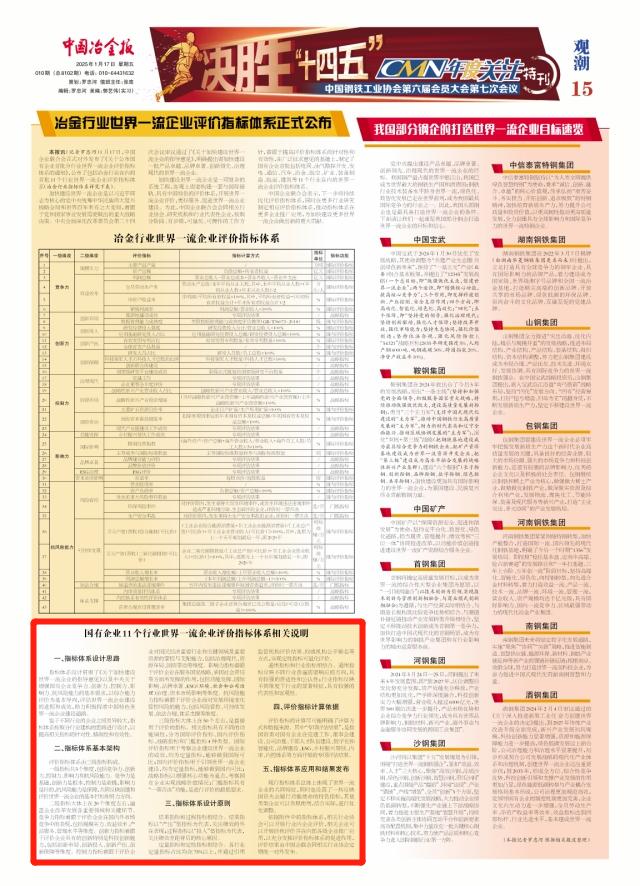 指標(biāo)體系設(shè)計(jì)貫徹了《關(guān)于加快建設(shè)世界一流企業(yè)的指導(dǎo)意見(jiàn)》以及中央關(guān)于增強(qiáng)國(guó)有企業(yè)競(jìng)爭(zhēng)力、創(chuàng)新力、控制力、影響力、抗風(fēng)險(xiǎn)能力的基本要求,以綜合能力評(píng)價(jià)為基本導(dǎo)向,評(píng)估世界一流企業(yè)建設(shè)的進(jìn)程和成效,助力積極探索中國(guó)特色世界一流企業(yè)建設(shè)道路。