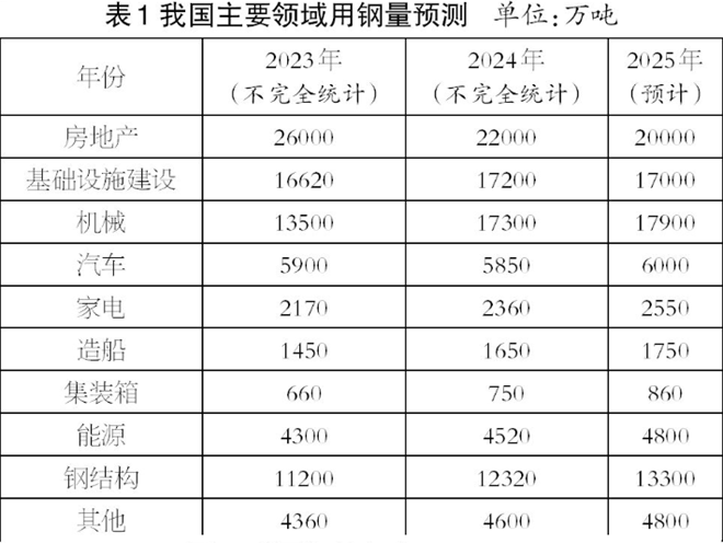 我國鋼鐵行業(yè)下游分領(lǐng)域用鋼量詳見表1。