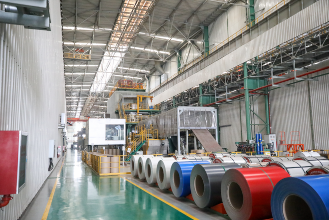 在晉鋼的生產車間,酸連軋機組、連續熱鍍層機組、連續彩涂生產線機組各自運行,鋼帶快速傳動,一切顯得和諧又默契,在生產過程中幾乎無需人工干預,這不僅提高了生產穩定性和一致性,還確保了產品的均勻性和一致性。