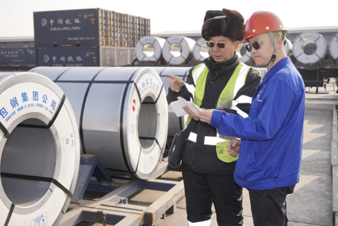 在包頭市九原物流園,每天都有1200噸左右的包鋼“重量級”快遞發往全國各地,向來自世界各地的用戶遞上一張“草原鋼城”的耀眼名片。