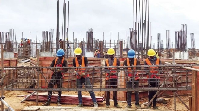圖為春節(jié)期間,中國(guó)二十二冶安哥拉項(xiàng)目部員工正在進(jìn)行鋼筋綁扎工作。(中國(guó)二十二冶 供圖)