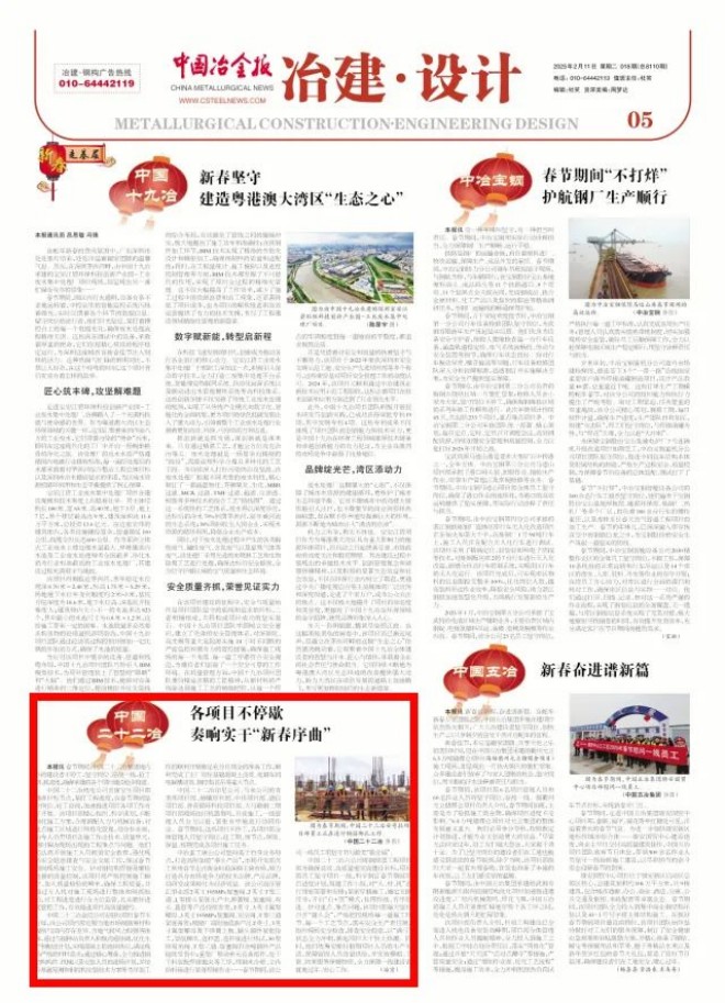 春節(jié)期間,中國(guó)二十二冶集團(tuán)境內(nèi)外的建設(shè)者不停工,堅(jiān)守崗位、奮戰(zhàn)一線,搶工期、抓進(jìn)度,確保承建的各個(gè)項(xiàng)目建設(shè)穩(wěn)步推進(jìn)。