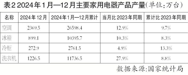 應用領域二:家用電器。2024年全國空調產量為26598.4萬臺,同比增長9.7%;全國冰箱產量為10395.7萬臺、同比增長8.3%,冷柜產量為2761.5萬臺、同比增長13.3%;全國洗衣機產量為11736.5萬臺,同比增長8.8%,整個行業生產運行良好,均為上升趨勢。