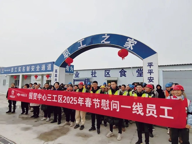圖為春節期間,中國五冶集團雄安國貿中心項目部慰問一線員工。(中國五冶集團 供圖)