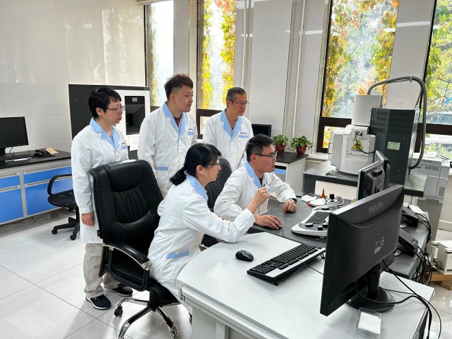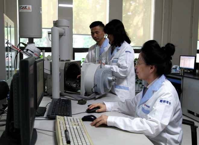 圖為研發(fā)人員討論分析新開(kāi)發(fā)的產(chǎn)品顯微組織。