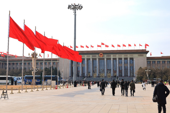3月4日下午,天安門廣場上紅旗招展,東風來了,春天的腳步近了。伴隨著春的序曲,全國政協十四屆三次會議在人民大會堂開幕,2100多名全國政協委員帶著他們的提案再次齊聚北京,為國家發展建言獻策。