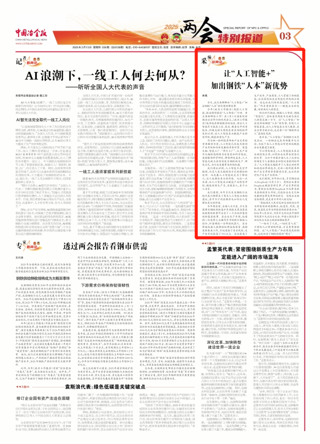 我們看到,今年多位來自鋼鐵行業的代表們都帶來了有關人工智能方面的建議,其中不少內容都涉及如何讓人發揮出更大的價值。