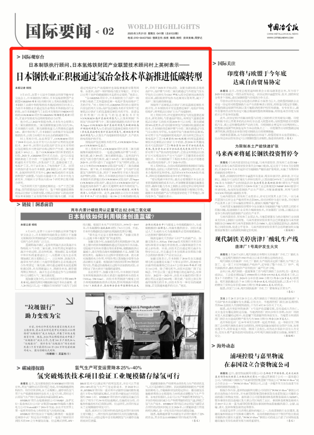 3月13日,在第十五屆中日鋼鐵業(yè)環(huán)保節(jié)能專家交流會上,日本制鐵執(zhí)行顧問、日本氫煉鐵財(cái)團(tuán)產(chǎn)業(yè)聯(lián)盟(GREINS項(xiàng)目)技術(shù)顧問村上英樹在做題為《日本鋼鐵工業(yè)碳中和轉(zhuǎn)型的技術(shù)挑戰(zhàn)》的報(bào)告時(shí)表示,當(dāng)前日本鋼鐵業(yè)正通過氫冶金等技術(shù)革新推動行業(yè)轉(zhuǎn)型,由日本新能源與工業(yè)技術(shù)發(fā)展組織(NEDO)資助的COURSE50項(xiàng)目和GREINS(煉鋼綠色創(chuàng)新)項(xiàng)目,正逐步發(fā)展成為這場轉(zhuǎn)型的動力引擎。
