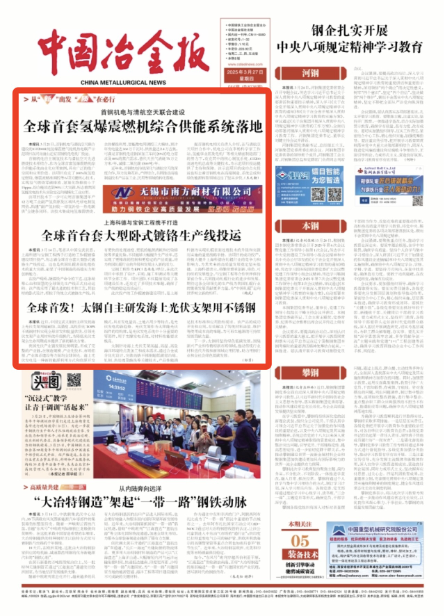 下一步,太鋼將堅持綠色低碳發展,圍繞新興產業和專精特新市場領域,推動傳統行業材料迭代升級和新領域應用拓展,助力用鋼行業和全社會綠色低碳發展。