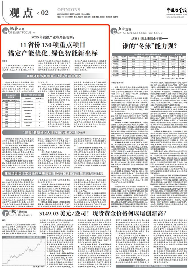 各省級發展改革部門公布的項目數據匯總顯示,2025年初以來,河北、江蘇、山東、天津、河南、山西、福建、湖北、四川、甘肅、陜西等11省份已公布130項涉及鋼鐵行業的重點建設項目名單,其中部分項目已開工。這些項目呈現出諸多顯著特點,包括區域布局差異化凸顯、新材料嶄露頭角、數字化智能化改造提速、綠色低碳環保引領升級、產業鏈供應鏈聯動延伸、強化資源綜合利用等。它們不僅是當下鋼鐵行業實現轉型與高質量發展的關鍵抓手,還是整治行業“內卷”、在細分領域探尋新賽道的突破口與試金石。
