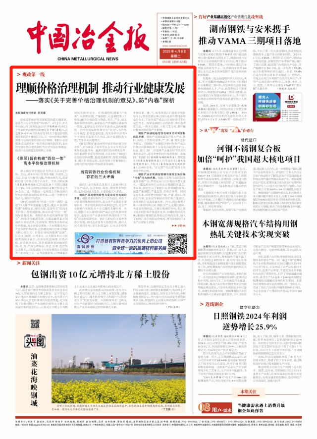 鋼鐵行業價格治理機制的穩定與完善,對行業自身及宏觀經濟的高質量發展意義重大。為應對當前行業形勢的挑戰,鋼鐵行業應積極響應《意見》精神,健全市場價格形成、引導、調控、監管機制,提升資源配置效率,推動產業向綠色低碳轉型,規范市場價格行為,逐步化解現存矛盾,實現價格機制的優化與完善,推動鋼鐵行業邁向高質量發展新階段,為國民經濟的穩健前行持續注入強勁動力。(賀宗春)