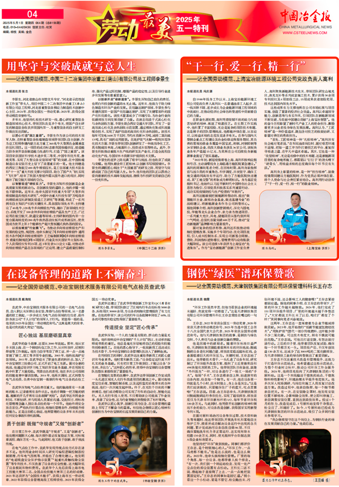 這些成果有力支撐他所在公司市場拓展與項目實施,創造了顯著的經濟社會效益。高利以卓越領導能力、創新思維與務實作風,引領團隊在新能源領域不斷突破,為美麗中國建設貢獻“上海寶冶智慧”。他的奮斗歷程彰顯了新時代產業工人的使命擔當,激勵著更多從業者投身綠色發展浪潮。高利認為,“工匠精神”是一種價值追求,既包含對技藝的極致鉆研,又彰顯對責任的勇敢擔當。