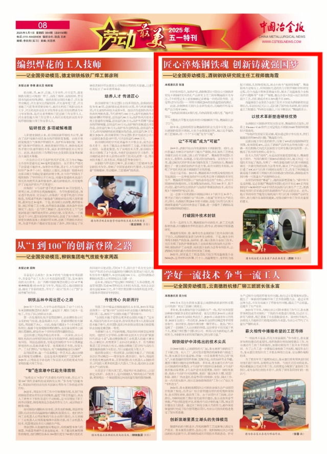 高溫鎳基合金及鈦合金加工技術(shù)不僅成為酒鋼新的效益增長(zhǎng)點(diǎn),年創(chuàng)效2億元以上,還打破了國(guó)外技術(shù)封鎖,助力國(guó)家重點(diǎn)工程建設(shè)。“科研沒有捷徑,只有不斷嘗試。”魏海霞表示。