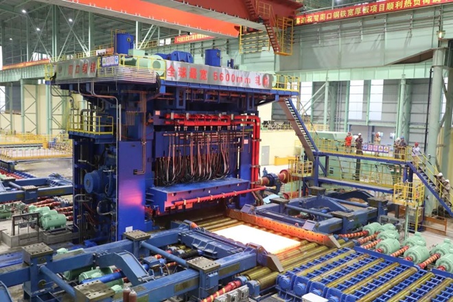 圖為河南鋼鐵集團5600毫米軋機生產場景。(閆明 攝)