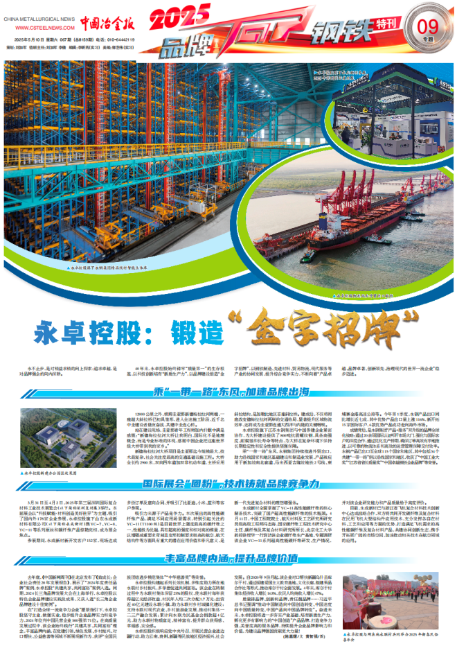 40年來,永卓控股始終鑄牢“質量第一”的生存根基,以科技創新培育“新質生產力”,以品牌建設鍛造“金字招牌”,以鋼鐵制造、先進材料、貿易物流、現代服務等產業的協同發展,提升綜合競爭實力,不斷向著“產品卓越、品牌卓著、創新領先、治理現代的世界一流企業”穩步邁進。