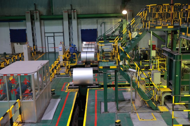 圖為酒鋼熱軋酸洗板鍍鋅鋁鎂聯(lián)合機(jī)組項(xiàng)目助推碳鋼薄板廠產(chǎn)品結(jié)構(gòu)優(yōu)化升級(jí)。