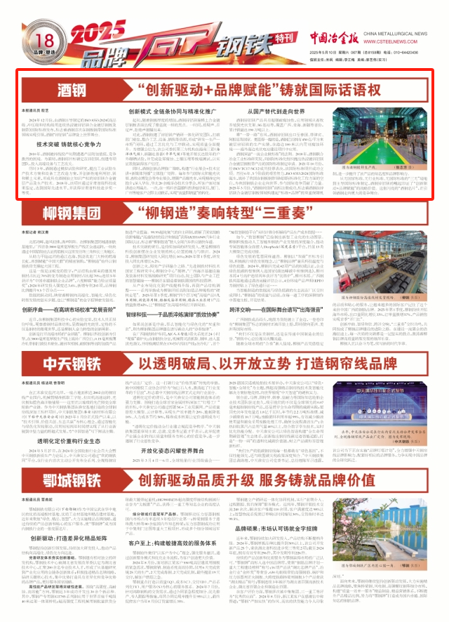 從無(wú)國(guó)家標(biāo)準(zhǔn)、無(wú)行業(yè)標(biāo)準(zhǔn)、無(wú)國(guó)際標(biāo)準(zhǔn)的“三無(wú)”境地到主導(dǎo)國(guó)際標(biāo)準(zhǔn)制定,酒鋼鋅鋁鎂的崛起印證了“創(chuàng)新驅(qū)動(dòng)+品牌賦能”的戰(zhàn)略價(jià)值。這張閃亮的“酒鋼名片”,正引領(lǐng)酒鋼走向更大的競(jìng)爭(zhēng)舞臺(tái)。