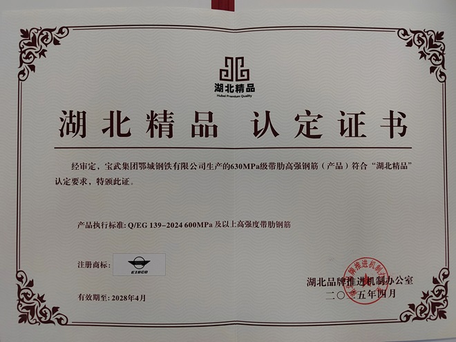 持續的產品創新和優質服務為鄂鋼贏得市場的廣泛認可。“鄂鋼牌”商標入選中國品牌庫,榮膺“鋼筋品牌計劃—重大工程建設榜樣”稱號;16項產品獲“湖北名牌產品”、冶金行業“金杯獎”等榮譽,630兆帕級帶肋高強鋼筋、鍋爐和壓力容器用正火鋼板、大跨度鐵路橋梁用鋼板3個產品榮獲“湖北精品”稱號;鄂鋼連續3年被評為湖北省百強高新技術企業、湖北省百強企業和制造業百強。