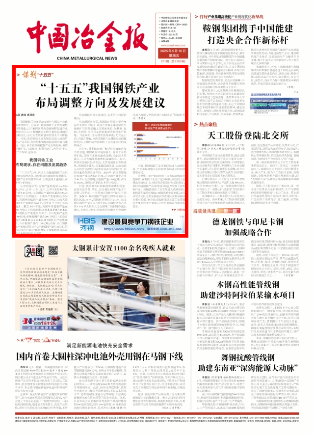 我國鋼鐵工業布局演變始終與國家產業政策高度相關。近年來,我國鋼鐵工業結構調整持續推進,以產能跨區域向沿海轉移促進產業布局優化,以大型鋼鐵企業聯合重組促進組織結構優化,全行業發展質量和發展水平不斷提升。當前,我國鋼鐵工業發展已經進入成熟階段,產業布局、組織結構調整面臨新的形勢與挑戰。對此,我們應準確把握產業發展趨勢,著眼關鍵環節,主動作為、打通“堵點”,為行業“十五五”開好局、起好步。