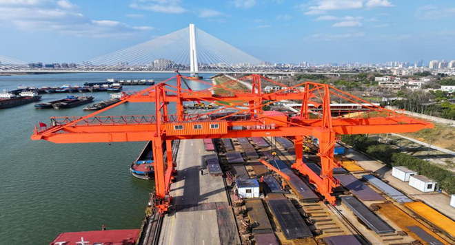 湘鋼順祥碼頭正在作業(yè)。(賀意波 拍攝)