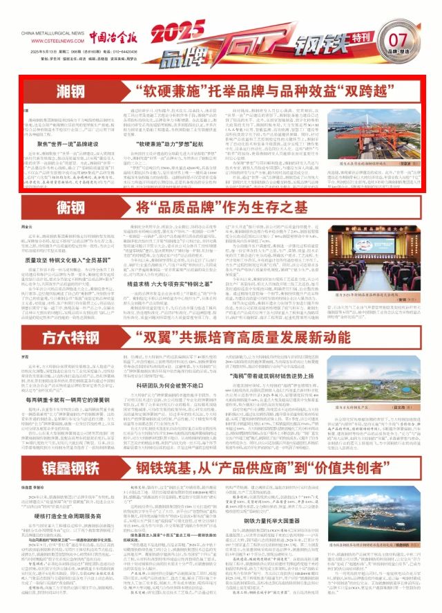 目前,通過“世界一流”品牌建設(shè),湘鋼完成了從傳統(tǒng)大鋼廠到現(xiàn)代化大型鋼鐵聯(lián)合企業(yè)蝶變轉(zhuǎn)型,實現(xiàn)品牌與品種效益的“雙跨越”,勞動生產(chǎn)率的穩(wěn)步提升、新產(chǎn)品研發(fā)的連戰(zhàn)連捷,體現(xiàn)著該品牌建設(shè)的成效。此外,“世界一流”品牌建設(shè)還為湘鋼帶來巨大的經(jīng)濟效益,年營業(yè)收入站穩(wěn)“千億”平臺、利潤穩(wěn)居行業(yè)前列,連續(xù)3年助力湖南鋼鐵集團進入世界500強企業(yè),不斷提升湘鋼的知名度與美譽度。(何展)