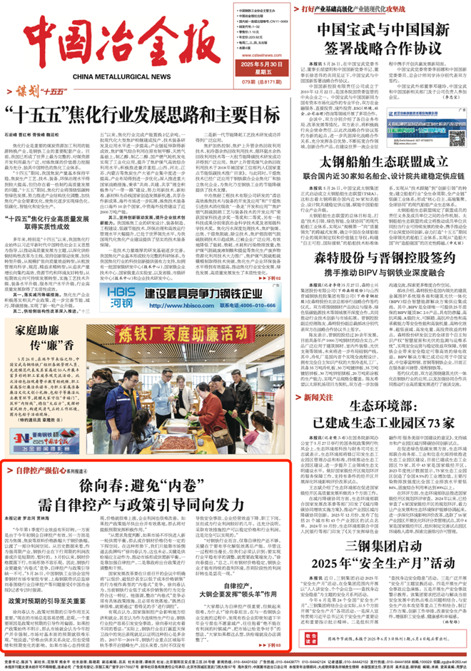 “今年第1季度行業(yè)效益有所好轉(zhuǎn),一方面是由于今年初鋼企自律控產(chǎn)有效,另一方面是因為焦煤、焦炭等原料價格跌幅大于鋼價跌幅,讓渡了一部分利潤空間。從歷史數(shù)據(jù)來看,作為強周期產(chǎn)業(yè),鋼鐵行業(yè)在下行周期的利潤改善或許是短期的、暫時的。3月份以來,鋼材價格震蕩下行,市場形勢不容樂觀。因此,鋼鐵行業(yè)要避免‘內(nèi)卷式’競爭,自律控產(chǎn)與政策引導缺一不可?!?月26日,中國鋼鐵工業(yè)協(xié)會宣傳委鋼材市場專家組專家、上海鋼聯(lián)資訊總監(jiān)徐向春圍繞行業(yè)自律控產(chǎn)等問題接受《中國冶金報》記者專訪時強調(diào)。