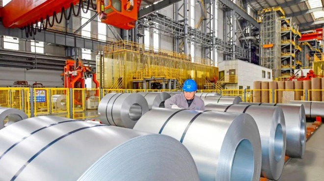 圖為河鋼集團唐鋼公司職工認真檢查綠色低碳汽車鋼產品質量。(河鋼供圖)