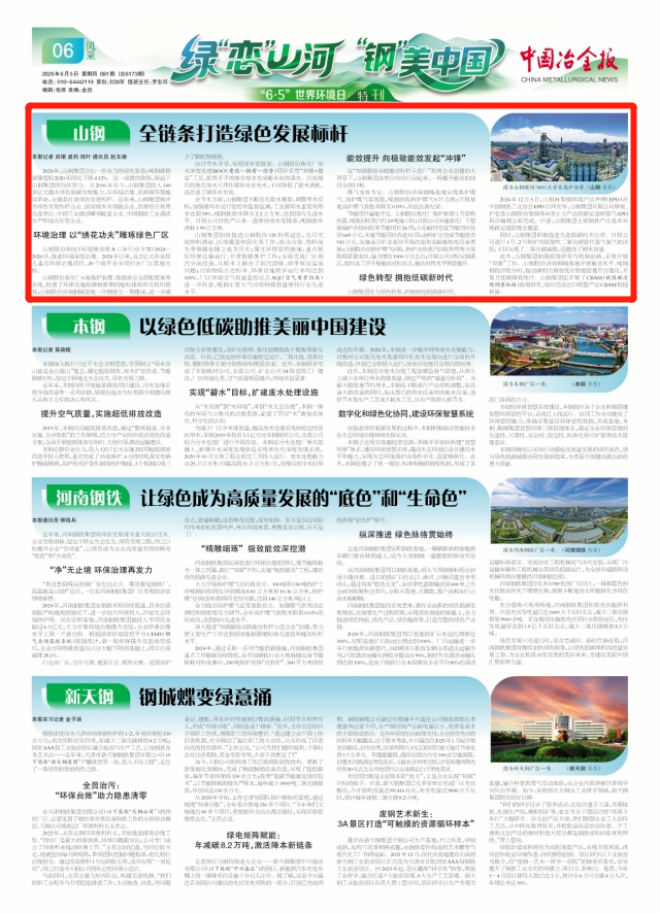 2024年,山鋼集團交出一份有力的綠色答卷:噸鋼碳排放強度較2020年同比下降4.12%。這一成績的取得,得益于山鋼集團的持續(xù)努力。從2016年至今,山鋼集團投入140多億元提升綠色低碳發(fā)展能力,從環(huán)境治理、資源循環(huán)到能效革命,全鏈條打造綠色發(fā)展標(biāo)桿。近年來,山鋼集團被評為綠色發(fā)展標(biāo)桿企業(yè)、國家級水效領(lǐng)跑企業(yè)、資源綜合利用先進單位、中國工業(yè)碳達峰領(lǐng)跑者企業(yè)、中國鋼鐵工業(yè)清潔生產(chǎn)環(huán)境友好型企業(yè)。