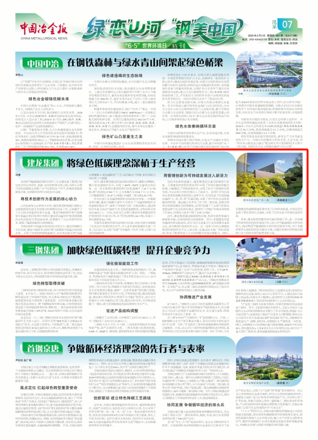 未來,建龍集團(tuán)將繼續(xù)深化減污降碳工作,進(jìn)一步加強(qiáng)與科研機(jī)構(gòu)和高校的緊密合作,加大對節(jié)能減排技術(shù)研發(fā)的投入,推動集團(tuán)節(jié)能減排技術(shù)的持續(xù)創(chuàng)新和升級,為行業(yè)提供更多先進(jìn)的綠色技術(shù)解決方案,為建設(shè)美麗中國和推動鋼鐵行業(yè)可持續(xù)發(fā)展貢獻(xiàn)更多的力量。(劉博)