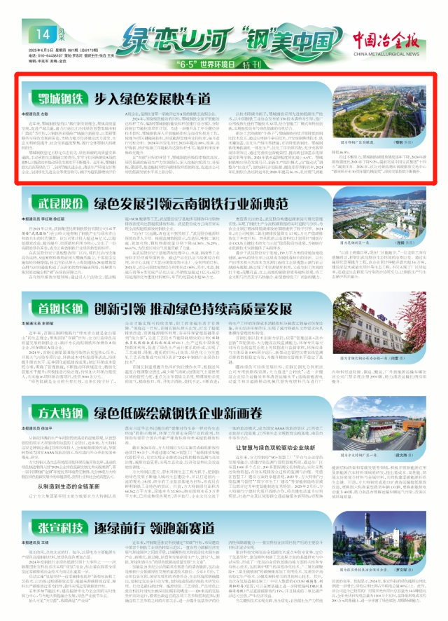 經過不懈努力,鄂城鋼鐵碳排放強度逐年下降,2024年碳排放強度比2020年下降9.2%,提前完成中國寶武集團“十四五”減排任務。2024年,該公司榮獲湖北省碳排放交易中心“碳市場開市10周年履約模范獎”,綠色發展指數不斷提升。