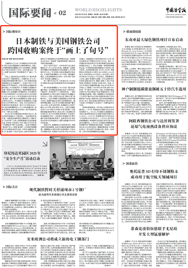 回顧收購(gòu)案進(jìn)程,今年初以來(lái)該案歷經(jīng)多重波折。1月3日,拜登政府以國(guó)家安全為由簽發(fā)收購(gòu)禁令。1月6日,日本制鐵與美國(guó)鋼鐵公司聯(lián)合起訴拜登政府及美國(guó)外國(guó)投資委員會(huì)(CFIUS)。5月23日,特朗普宣稱雙方將達(dá)成“計(jì)劃中的合作伙伴關(guān)系”。5月24日,《日本經(jīng)濟(jì)新聞》指出,特朗普表態(tài)恰逢日美第三輪關(guān)稅談判關(guān)鍵節(jié)點(diǎn)。5月25日,日本《每日新聞》報(bào)道特朗普承諾“美鋼繼續(xù)留在美國(guó)”,并創(chuàng)造7萬(wàn)個(gè)崗位及140億美元投資。“隨著收購(gòu)落地,日本制鐵拼完了其全球擴(kuò)張戰(zhàn)略中的‘最后一塊拼圖’。”《日本經(jīng)濟(jì)新聞》如是總結(jié)道。