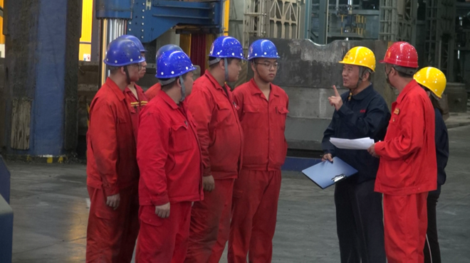 趙光普在生產(chǎn)大型渦輪盤現(xiàn)場