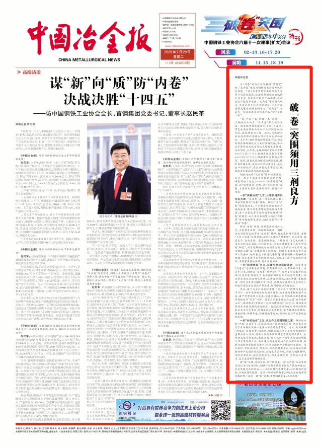 當(dāng)“內(nèi)卷”成為行業(yè)發(fā)展的“緊箍咒”時,“反內(nèi)卷”便成為鋼鐵行業(yè)轉(zhuǎn)型升級的必答題。7月1日召開的中央財經(jīng)委員會第六次會議提出,依法依規(guī)治理企業(yè)低價無序競爭,引導(dǎo)企業(yè)提升產(chǎn)品品質(zhì),推動落后產(chǎn)能有序退出。“反內(nèi)卷”號角再次吹響,不僅是對無序競爭的宣戰(zhàn),還是對高質(zhì)量發(fā)展路徑的重新定義。“反內(nèi)卷”,正成為一場名副其實牽涉各行各行的“全民工程”。