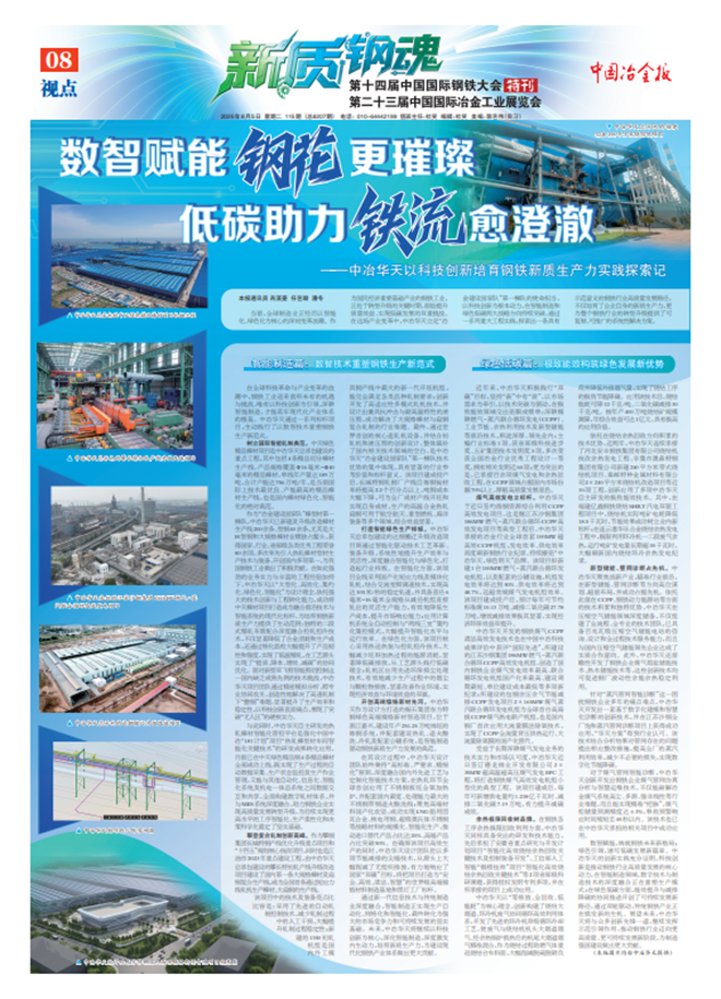 數智賦能,鑄就鋼鐵未來新格局;綠色引領,譜寫低碳發展新篇章。中冶華天的創新實踐充分證明,科技創新是推動鋼鐵行業高質量發展的核心動力,在智能制造領域,數字技術與制造技術的深度融合正在重塑生產模式;在綠色低碳方面,能效提升與減排降碳的協同推進開創了可持續發展新路徑,通過雙輪驅動,傳統鋼鐵產業正在煥發新的生機。展望未來,中冶華天將與眾多創新先鋒一道,繼續發揮示范引領作用,推動鋼鐵行業邁向更高質量、更可持續發展新階段,為制造強國建設做出更大貢獻。