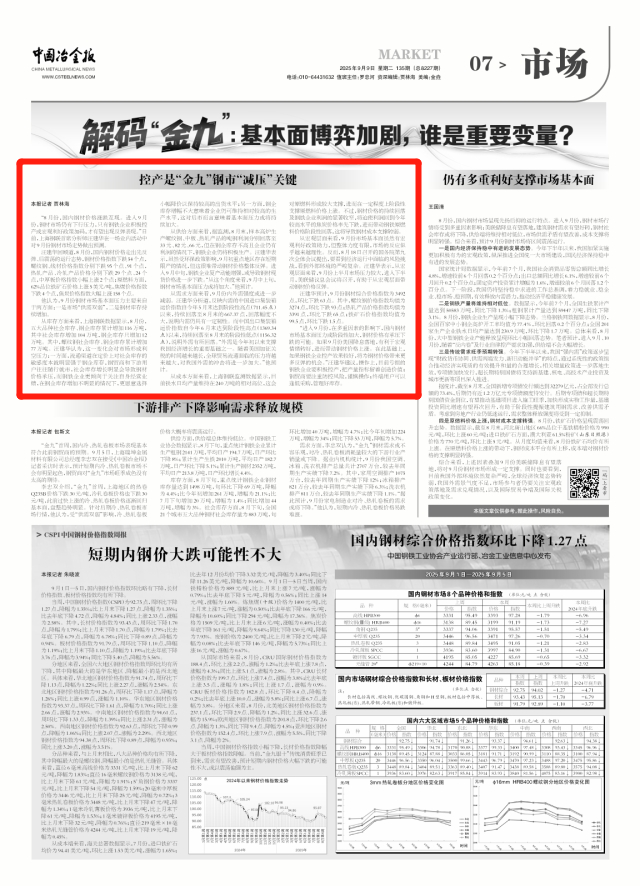 “進入9月份,在多重因素的影響下,國內鋼材市場基本面壓力或階段性加大,鋼材價格有承壓下跌的可能。如果9月份美國降息落地,有利于宏觀情緒轉好,進而帶動鋼材價格上漲。在此基礎上,如果鋼鐵企業控產效果較好,將為鋼材價格帶來更多反彈的機會。”汪建華建議,操作上,目前虧損的鋼鐵企業要積極控產,把產量指標留著創造價值;鋼貿商要注重防控風險,謹慎操作;終端用戶可以逢低采購,管理好庫存。