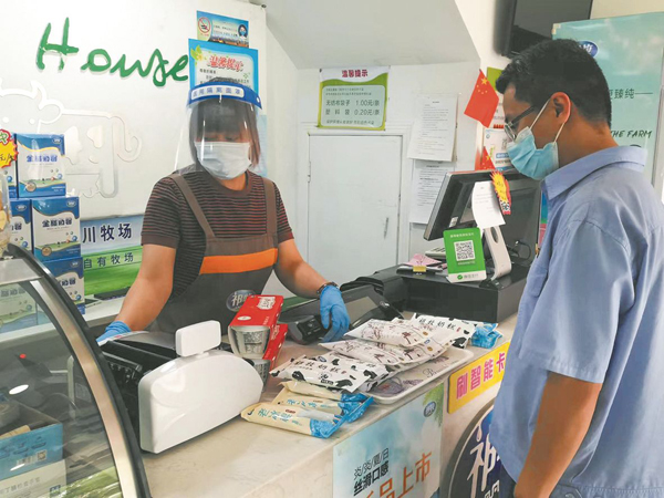 圖為酒鋼職工在體驗店購買酒鋼生產(chǎn)的祁牧牌雪糕。 (記者 王漢杰 攝)