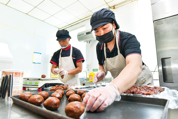 圖為承德釩鈦萬樹園公司職工正在制作月餅。 (劉士富 攝)