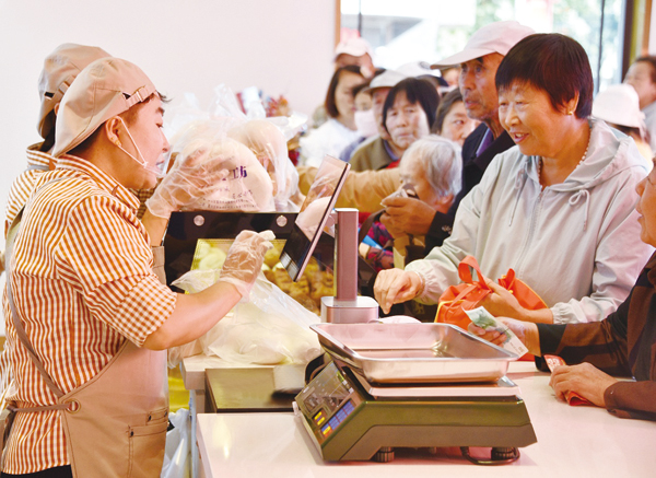 圖為宣化古城市民正在選購(gòu)張宣科技主食工坊食品。 (本報(bào)記者 李巍 攝)