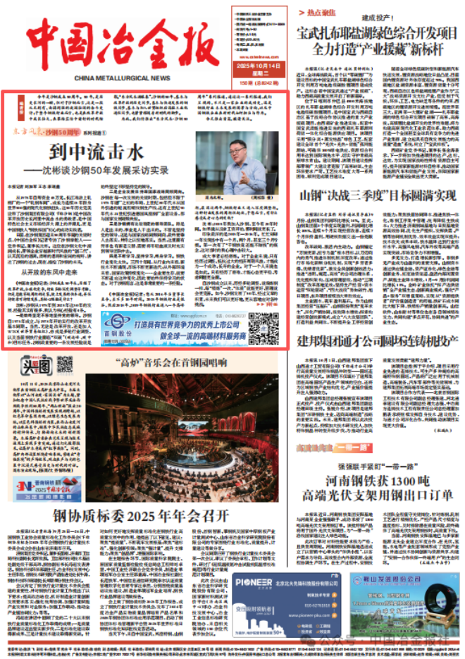 日前,在沙鋼集團迎來50周年華誕的關鍵時刻,《中國冶金報》記者專訪了沙鋼掌舵人——集團黨委書記、董事長沈彬。這位在沙鋼文化中浸潤成長、帶領企業(yè)穿越新時代風浪的“創(chuàng)二代”,以其沉穩(wěn)的語調(diào)、清晰的思路和宏闊的視野,描繪了沙鋼的過去、現(xiàn)在與未來。