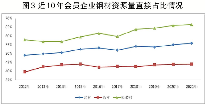 近10年會員企業(yè)鋼材資源量直接占比提高6.91個百分點