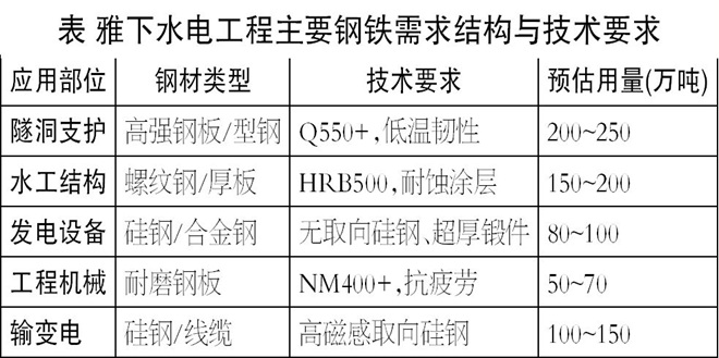 雅下水電工程的“鋼需”結構聚焦特種鋼材——