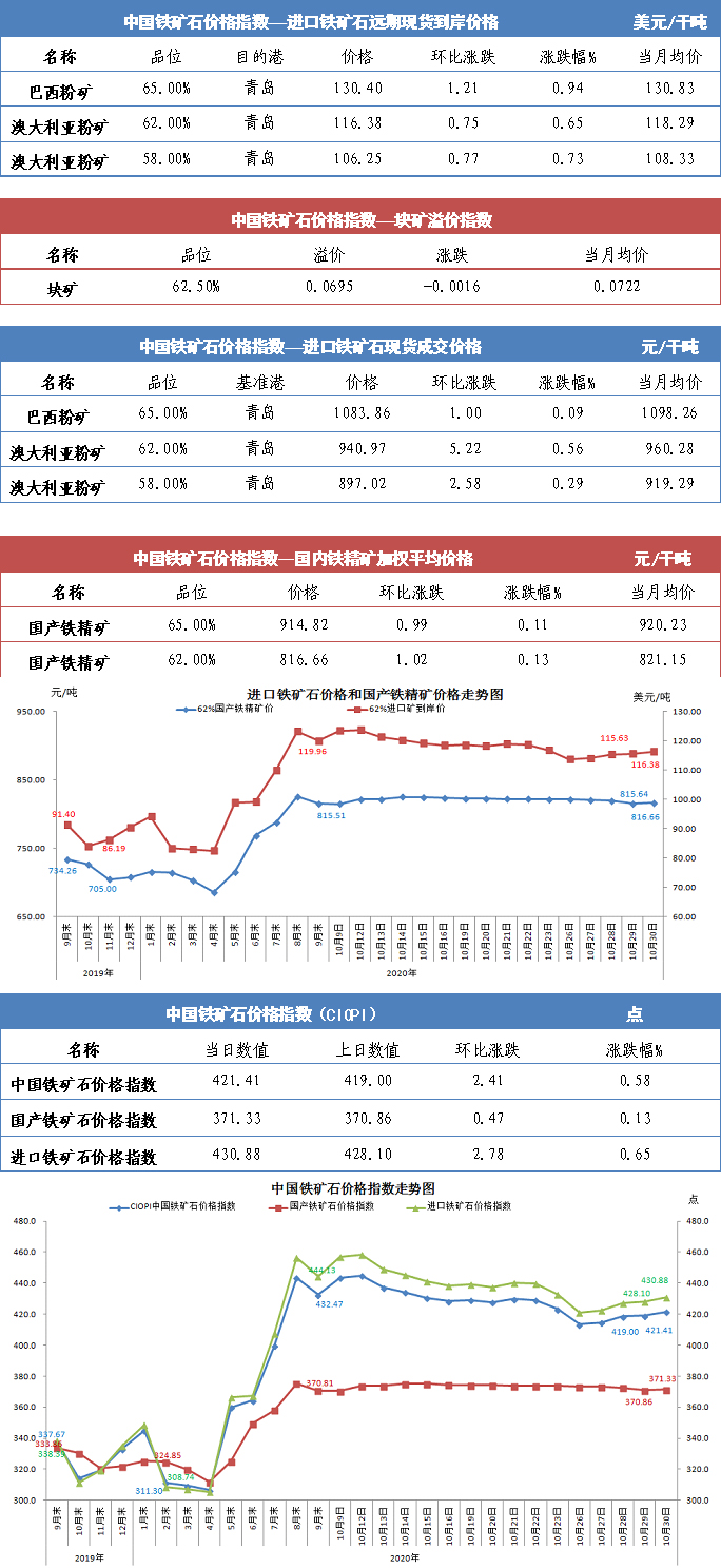 【行業(yè)指數(shù)】10月30日中國(guó)鐵礦石價(jià)格指數(shù)