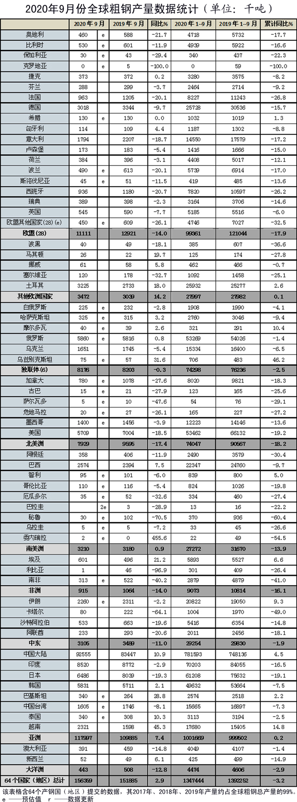 本報(bào)訊(記者朱曉波)10月23日,世界鋼鐵協(xié)會(huì)(WSA)發(fā)布了9月份全球粗鋼產(chǎn)量數(shù)據(jù)。9月份,全球64個(gè)納入世界鋼協(xié)統(tǒng)計(jì)的國(guó)家和地區(qū)粗鋼產(chǎn)量為1.564億噸,同比增長(zhǎng)2.9%。