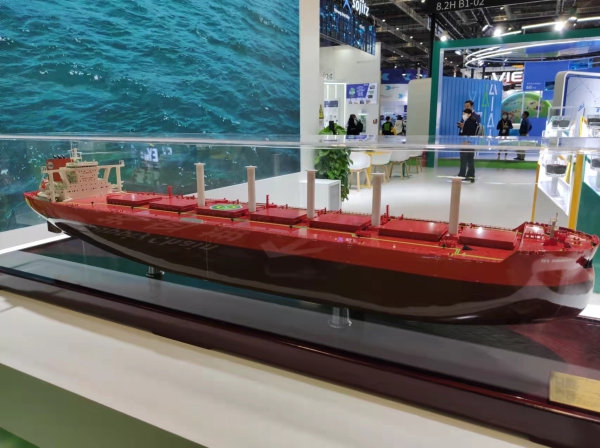 此次進博會淡水河谷展臺的另一亮點是一艘按照1∶250比例制作的船模,其原型是世界上首艘配備旋翼帆的礦砂船。這艘船名為海洋舟山號,是一艘載重量為32.5萬噸的Guaibamax型船。該船共裝有5個旋翼帆,使能效至多提高8%,由此每年可減排3400噸二氧化碳當量。淡水河谷預計,旋翼帆技術可用于船隊中至少40%的船舶。屆時,淡水河谷鐵礦石海運過程中產生的二氧化碳排放量每年可減少近1.5%。