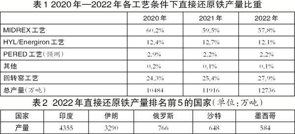 此外,統(tǒng)計(jì)數(shù)據(jù)顯示,2022年,接近70.1%的直接還原鐵是使用天然氣還原的,29.9%是采用煤基還原的。2022年,印度直接還原鐵的總產(chǎn)量為4355萬噸,其中3539萬噸的直接還原鐵是采用回轉(zhuǎn)窯工藝生產(chǎn)的,816萬噸是采用氣基直接還原工藝生產(chǎn)的。 (易文)