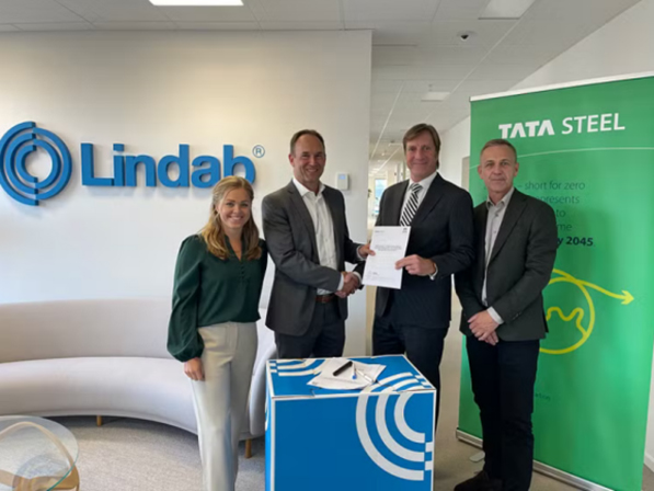 圖為塔塔鋼鐵與林達公司簽署低碳排放鋼供應協議現場。 (圖片來源于塔塔鋼鐵官網)